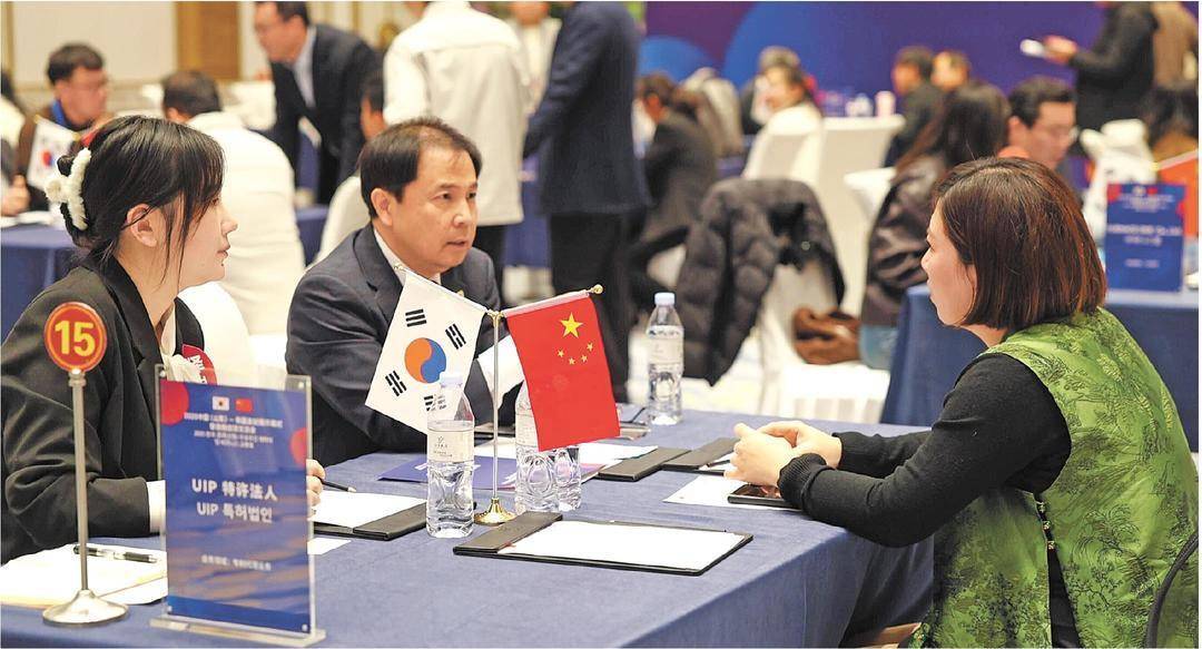 11月20日,2025中国(山东)—韩国友好周开幕式结束后,韩方企业、山东经济园区及企业代表开展对口洽谈。记者 杨庭栋 何雨晴 报道