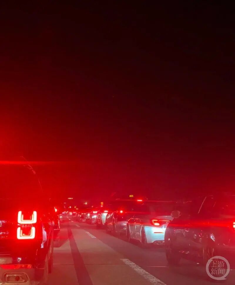 而令小薛颇为崩溃的是,途中车辆差点没油,好不容易遇到加油站,却被工作人员告知油车也堵在路上没有来,一辆车只允许加100元的油。“在云岩服务区排队上厕所也排了20分钟。”小薛无奈感慨:“堵车堵到怀疑人生,全靠硬撑。”