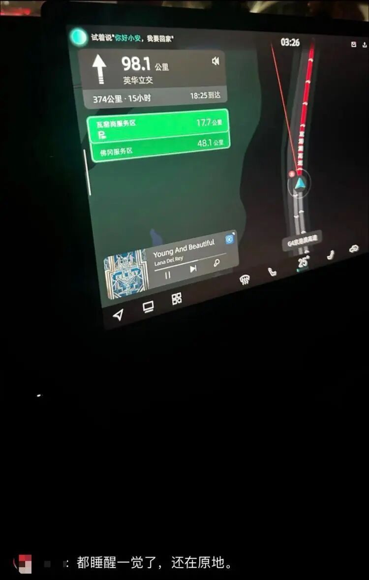 黄卡拉记得,车辆在凌晨3点左右行驶到G4京港澳高速英华立交附近时,车主们居然非常有默契地熄火睡觉了。“那里没有网络,又堵,还只有双车道。5点多我醒来时,车辆仍在原地纹丝未动。”更令人哭笑不得的是,一路途径的两个服务区都临时封闭,无法上厕所,“一家人从早上5点多醒来,一直憋到早上9点,才在第三个服务区解决了问题。”
